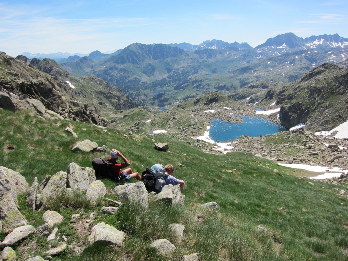 We left Klaas at the end of Estany de Ruis (1st photo), which was already pretty scenic, and climbed up past a few more lakes, getting ever more dramatic. After a quick lunch we climbed the last little bit up to the col (2nd photo) and were greeted by an amazing view over the other side down to Estany de Mar. It was generally agreed that the view was one of the most beautiful views we’d ever seen (2rd photo).