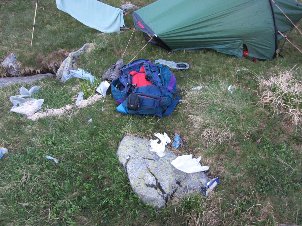 To begin with we assumed that it was probably a fox, but as we studied the teethmarks on the tent and realised that the animal had moved a bag weighing 10-15kg, we concluded it was probably bigger than a fox, and we’ve since spoken to a refuge guardian who said that the altitude (2,400m) was too high for a fox.