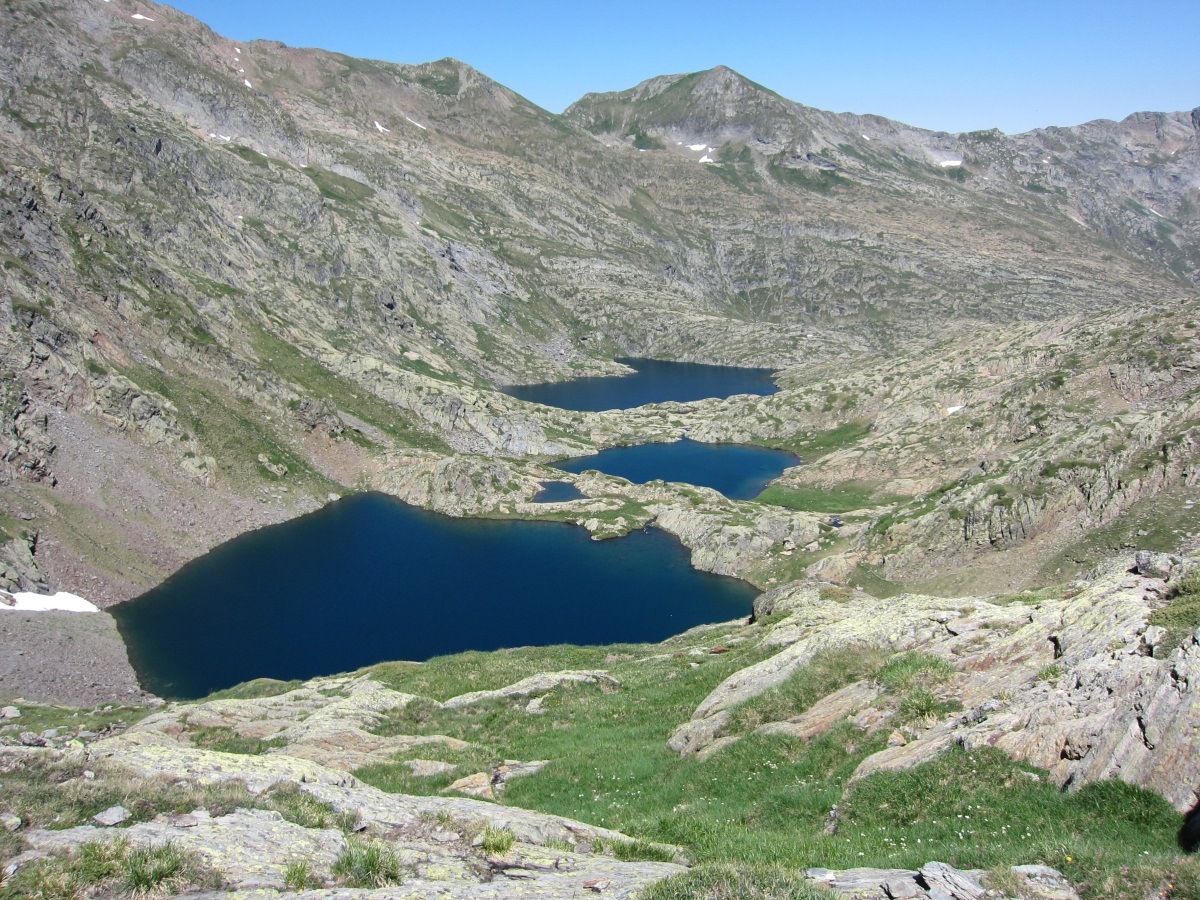 Although we may be embarrasingly slow, we actually made quite good progress today, climbing over three cols, past numerous mountain lakes (photo shows the three Estany Inferior de la Gallina) and on a couple of hours into the next day. The only hitch was the two hours in the middle of the afternoon when we lost each other and both set off down into the valley to call mountain rescue, but luckily we met up before any helicopters were scrambled.