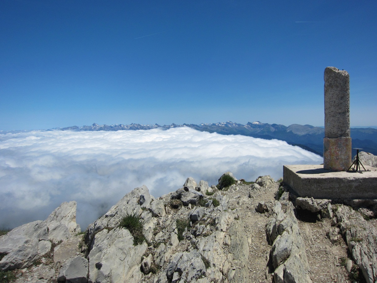 Tuesday began with an amazing climb of Pic d’Orhy from Iraty. The weather began warm and clear, but there were clouds building near the mountain and by the time I started climbing I was back in familiar surroundings - thick fog. After about 30 minutes climbing up a steep slope wearing hat and gloves, I suddenly found myself staring over the edge of a huge cliff, with unlimited visibility. Behind me there was a wall of fog and visibility of under 30m, but in front there were mountains and valleys stretching to the horizon.