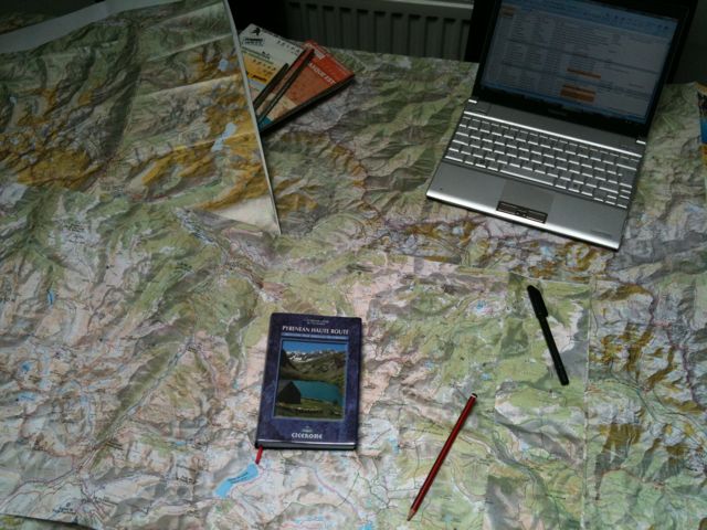 The first question about the route was whether I simply follow Joosten’s suggestion or do my own thing here and there. There are places from the original GR10 trip I did in 1996 that I’d always thought I’d go back to but, having sat down with maps and looked at where I’m going to camp, where I can buy food, fuel etc, I’ve decided it will be easier to just stick to the guidebook. The route covers eleven maps, and I’ve now plotted the route as far as the tenth. I’ll be camping most of the time and cooking on my stove, but there are times when I can’t re-stock food for up to 9 days, so I’m going to eat in refuges where possible to minimise the food I need to carry during these sections.